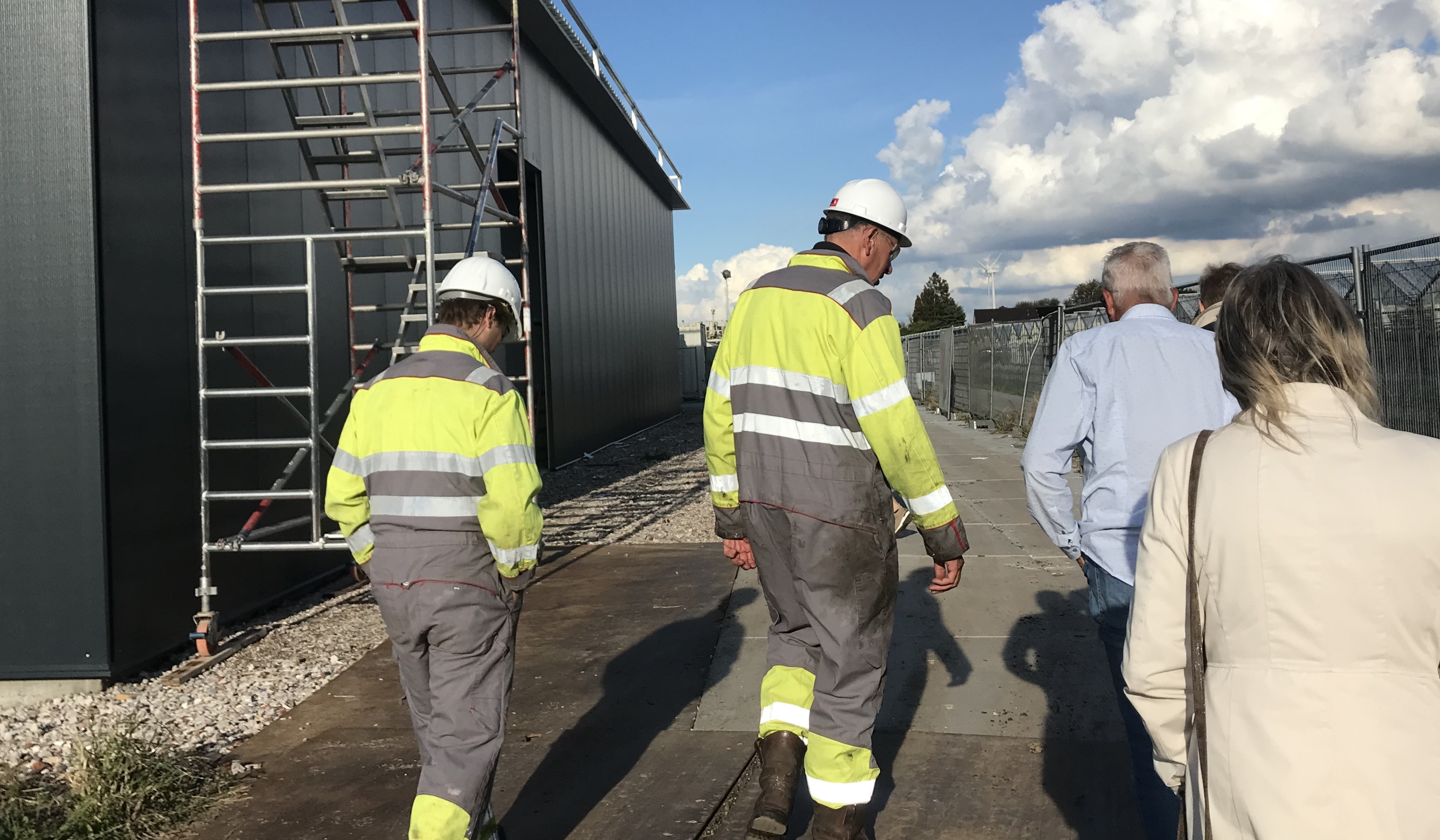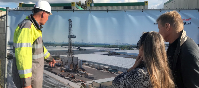 De bewoners liepen over het zijterrein. Daarbij viel het oog op de hoogte van de boortoren, maar ook op transformatoren en het aardwarmtegebouw in aanbouw: het gebouw voor Polanen, met één aardwarmtedoublet, wordt kleiner dan in Maasdijk waarin naar verwachting installaties voor drie aardwarmtedoubletten komen.